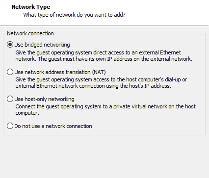 네트워크 타입은 브리지 방식을 이용해 주세요.