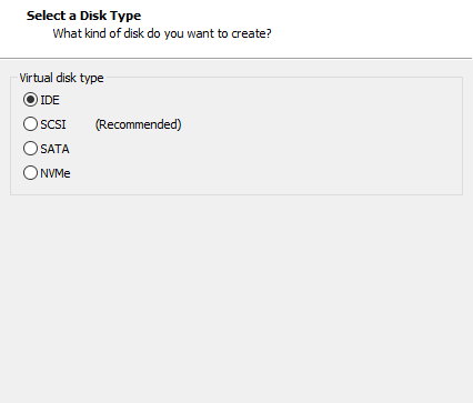 아직까지 VMware에 설치할 때는 호환성을 위해 반드시 IDE 방식을 선택해야 합니다.
