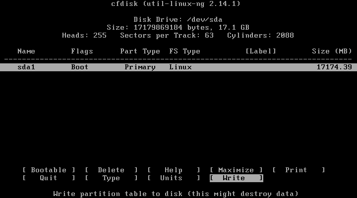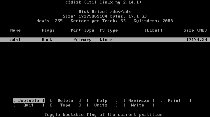 부팅 가능한 파티션으로 지정하기 위해 Bootable 항목을 선택하고 엔터 키를 눌러주세요.