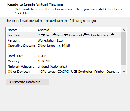 Customize Hardware 버튼을 눌러서 한 가지 더 설정해줘야 합니다.