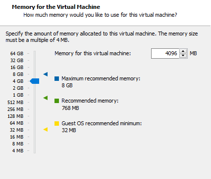 가상 운영체제의 메모리는 원활한 작동을 위해 4GB로 설정했습니다.