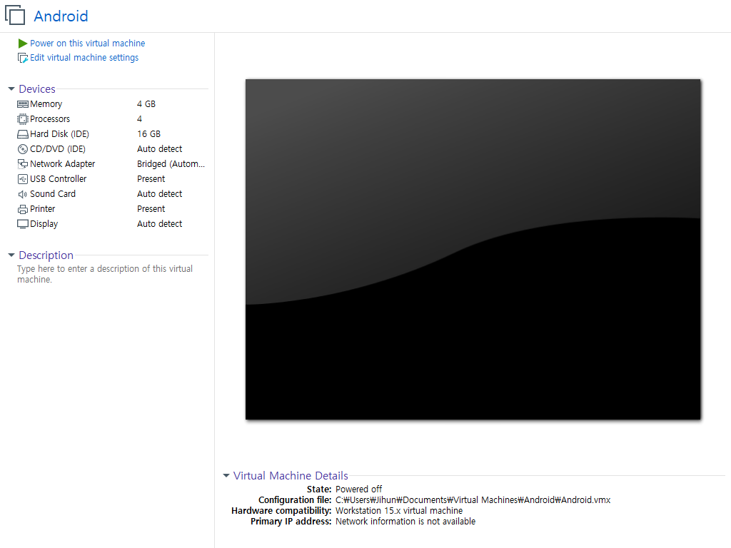 구매하지 않아도 생성한 안드로이드는 무료인 VMware Workstation Player를 통해 계속 이용이 가능합니다.