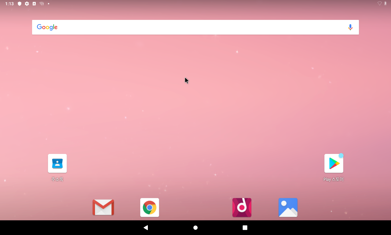 스마트폰을 사용할 때처럼 초기 설정을 마치면 드디어 익숙한 안드로이드 홈 화면을 볼 수 있습니다.